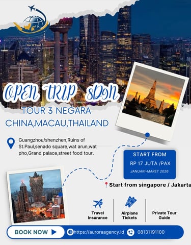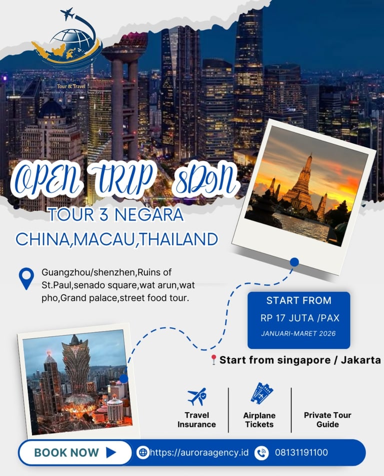 Nikmati perjalanan luar biasa 8 hari 9 malam, menjelajahi tiga negara ikonik asia. Dari gemerlap kota modern hingga keajaiban budaya yang tak lekang oleh waktu, semua dirancang dalam satu perjalanan mewah yang mengutamakan kenyamanan, gaya, dan momen tak terlupakan. Karena bagi pencinta pengalaman istimewa, satu destinasi saja tidak pernah cukup.β