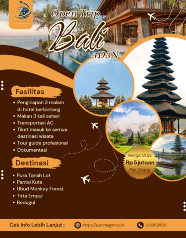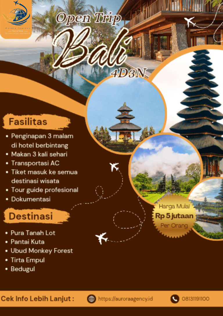 Open Trip Bali dirancang untuk menghadirkan liburan yang seimbang antara alam, budaya, dan kenyamanan. Dengan alur perjalanan yang rapi dan layanan profesional, paket ini cocok untuk Anda yang ingin menikmati Bali secara santai namun tetap berkesan.