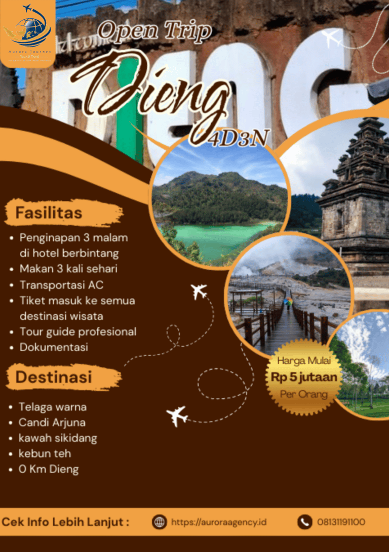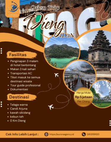 Open Trip Dieng dirancang untuk Anda yang ingin menikmati suasana dataran tinggi dengan udara sejuk, lanskap alami, dan jalur perjalanan yang nyaman serta tertata.