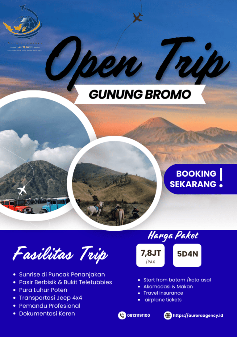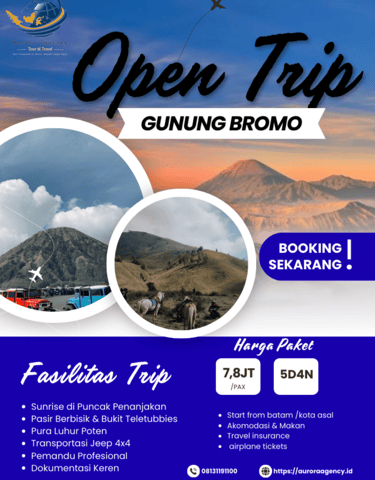 Nikmati perjalanan menuju salah satu ikon alam Indonesia. Dari matahari terbit di Puncak Penanjakan hingga lanskap Pasir Berbisik dan kawasan Bromo, perjalanan ini dirancang untuk menghadirkan pengalaman yang nyaman, tertata, dan berkesan dalam suasana alam yang autentik.